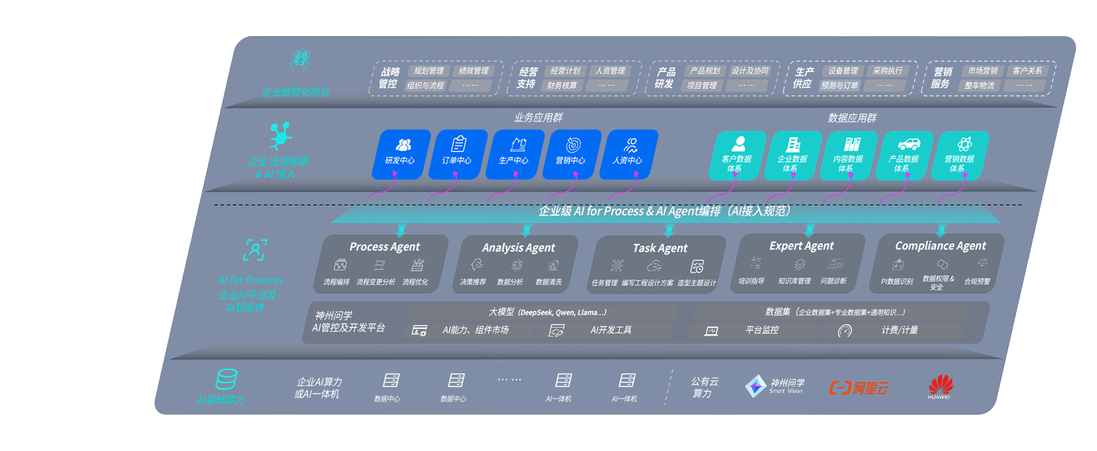 NG娱乐问学智车解决方案是一套基于AI技术的汽车行业智能化系统,,覆盖从底层算力到顶层AI应用的全栈方案。。。方案由算力层、、、模型层和应用层组成:算力层,,,方案支持多种一体机配置,,具备云端灵活部署、、、多云适配以及动态优化计算资源的能力;模型层,,,NG娱乐问学平台版提供了企业级AI应用一站式构建与管理平台,,,,支持基于后训练强化技术的汽车企业专属模型的训练、、、、评测和运营;应用层,,,,NG娱乐问学DeepSeek版提供包括超级员工、、、智能招采、、、、智能营销、、、、智能客服、、、、AI for BI等一系列解决方案,,,可助力汽车行业实现数字化转型,,让管理更智能、、、响应更敏捷。。。