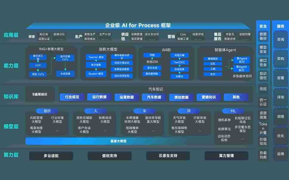 端到端的一站式AI工作空间深度融合了从企业战略规划到日常经营的全流程业务板块,,,,定向解决车企内部领域多、、部门多、、链条长、、场景碎片化等难题,,支持车企快速构建以AI为核心的生产力写作体系,,,实现任务执行与AI能力的无缝集成与交互